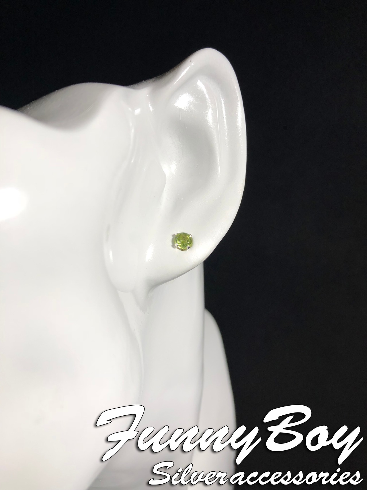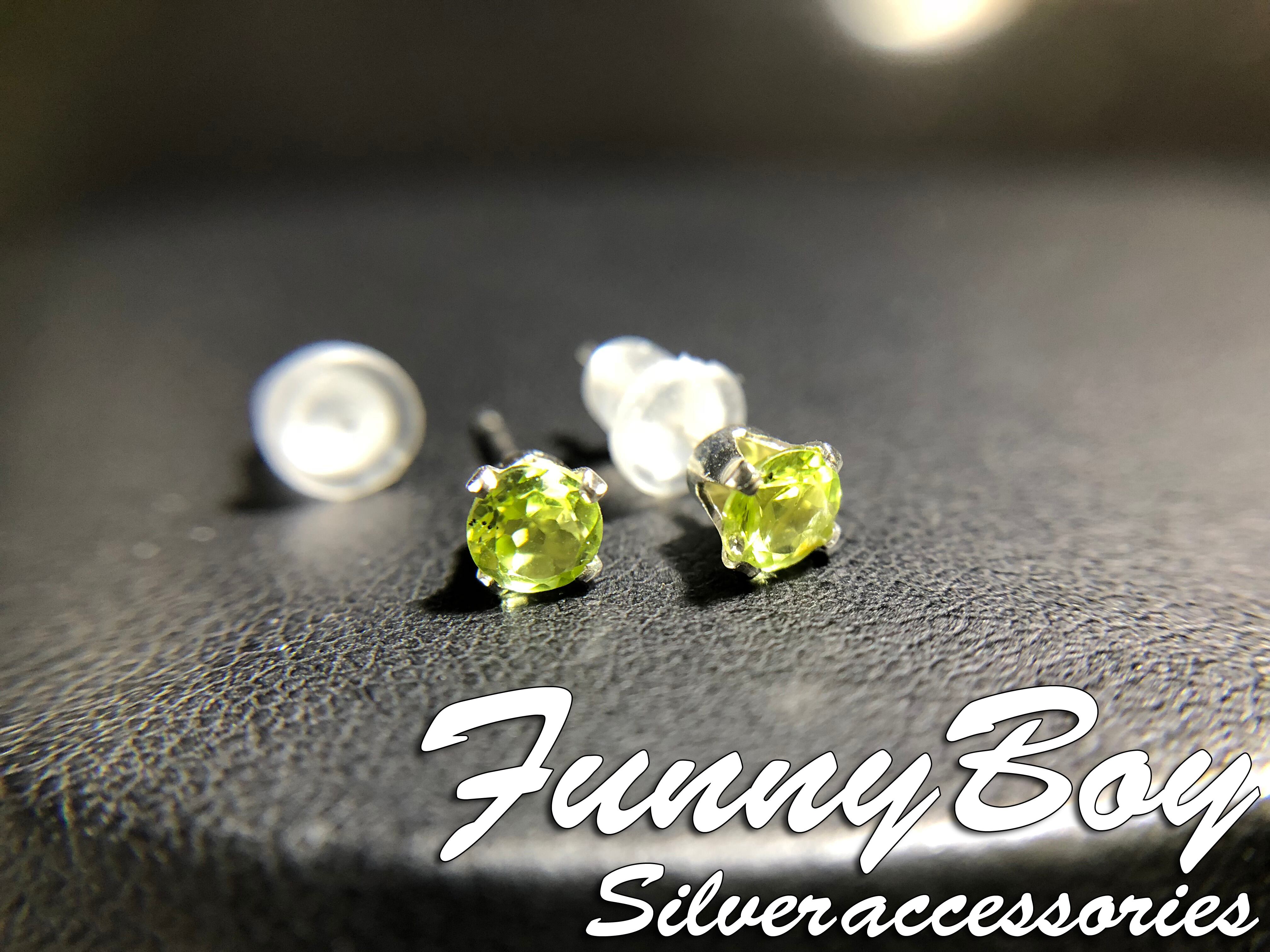 こちらは天然石のペリドットとシルバー925を使ったスタッドピアスです。
