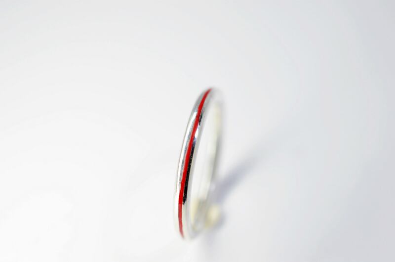 シンプルなデザインのシルバーリングにラインを彫り、樹脂をインレー(埋め込み加工)しました。