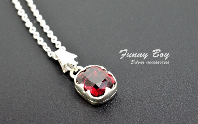 色、カット共に綺麗な大きい石目のピンクガーネットを使ったシルバーネックレスで、